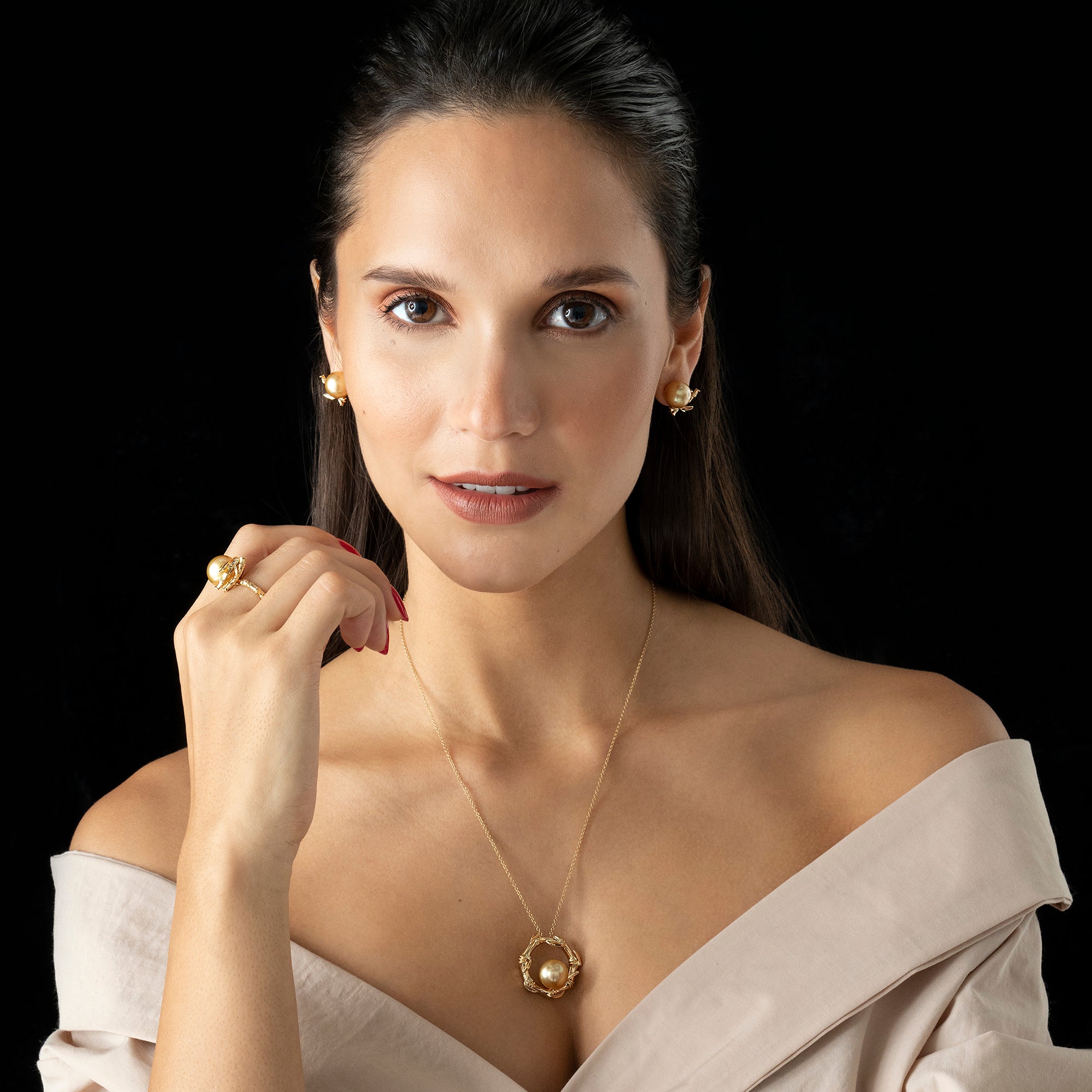 Each exquisite piece conjures serenity and mystique, bringing a touch of transcendent elegance to any look. Riveting artistry brings together the warmth of smooth gold with the radiance of the South Sea pearl in a breathtaking union of nature and human creativity.