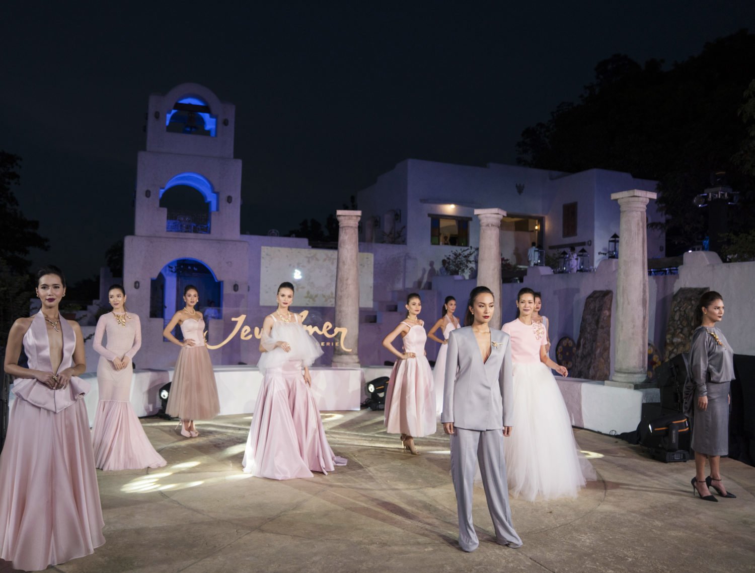 Jewelmer Joaillerie’s SS 2017 collection is unveiled in Pinto Art Museum, where modern works of art draw spectators into the realm of muses. Wearing the pieces, models parade in garments designed by celebrated fashion designer Joey Samson. Various silhouettes and ornate designs conjure fantasies of cruising, transporting guests further to the worlds of fashion and imagination.