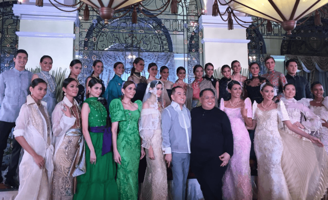 Guests were treated to a four-course Filipino menu and a fashion show with the theme “Manila Wear.” Celebrated Filipino fashion designer Randy Ortiz showcased his 32-piece collection, created with indigenous materials sourced from different provinces, and highlighted by the golden South Sea pearl. Here, a piña vintage gown is paired with a golden South Sea pearl strand; golden pearl earrings complement a dress made with indigenous weaves—the country’s cultural treasures are presented, honored, and re-imagined.