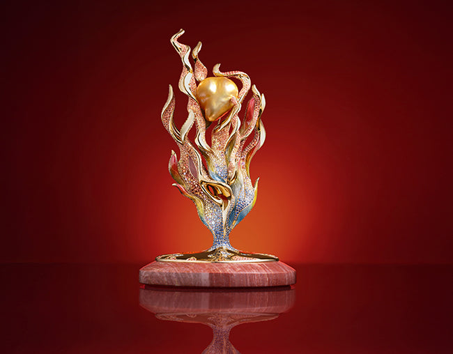 Infinite energy unravels in Objets d’Art. Fire, air, earth, and water reveal a dynamic universe united by pure harmony. Forming each design around the rare South Sea pearl, the gem of life, these exclusive pieces are elevated into works of art and expressions of true nature.